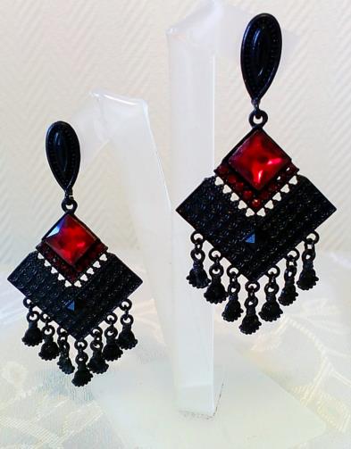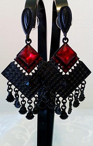 Brinco cravejado em pedras vermelas