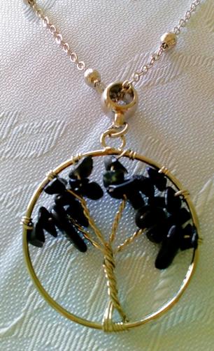 Cordão em metal prateado com esferas intermitentes medindo 56 cm com um pingente da Arvore da vida em metal prateado com pedras turmalinas medindo 4 cm( o significado da árvore da vida é nos lembrar que ficar parado no mesmo lugar não é uma opção. Enquanto está viva, ela cresce e se renova, A turmalina negra absorve energias negativas e facilita a renovação das energias positivas).