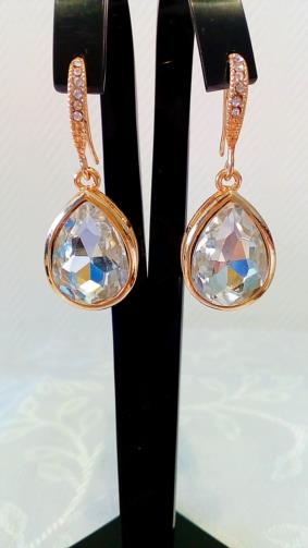 Peça de metal niquelada de cor ônix cravejada de pedras com um pingente de estrutura metálica em forma de gota com uma pedra de brilho medindo 4,0 cm.