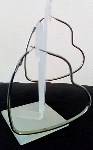 Peça de metal de cor ônix em forma de coração medindo 5,5 cm diâmetro.