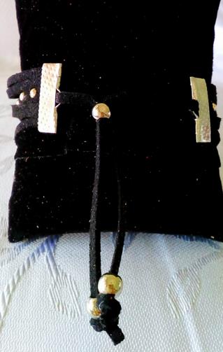Pulseira quádrupla de couro sintético medindo 20 cm ajustável na cor preta. Na primeira faixa temos 5 pingentes ( um timão de barco, um elefante, um símbolo oriental e duas pedras de brilho), segunda faixa pregueada, a terceira faixa possui 4 enfeites de símbolos da paz e a quarta faixa possui 8 pedras de brilho.