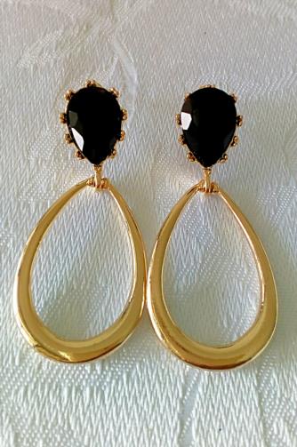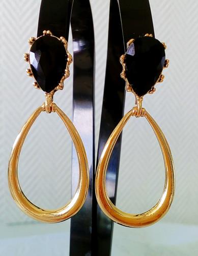 - Peça de metal de cor dourada em forma de gota com estrutura metálica com uma pedra de cor preta medindo 5,0 cm.