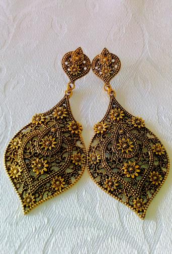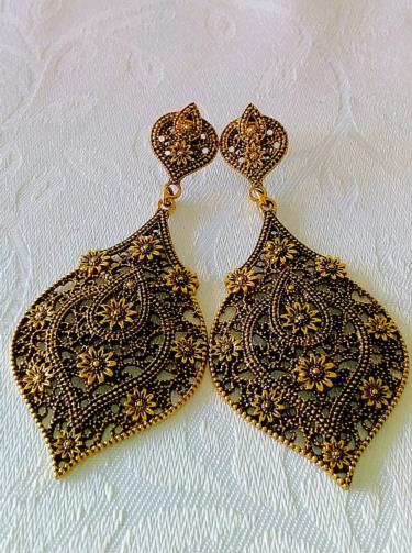 Peça de metal dourado em símbolo de Espada Estilizada rica em detalhes medindo 7 cm.