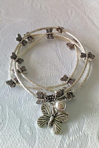 Pulseira-Colar Borboletas Prateadas