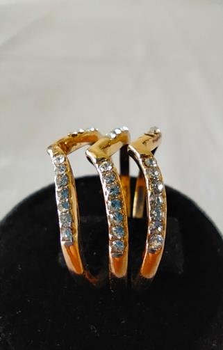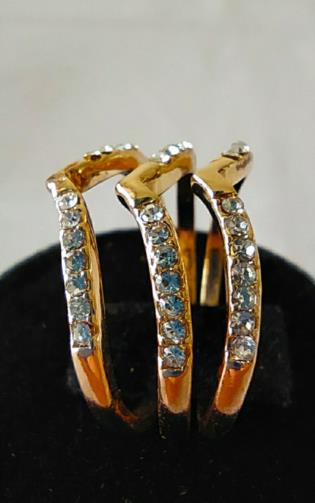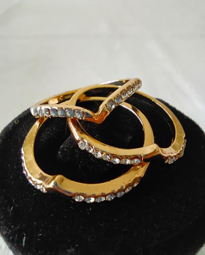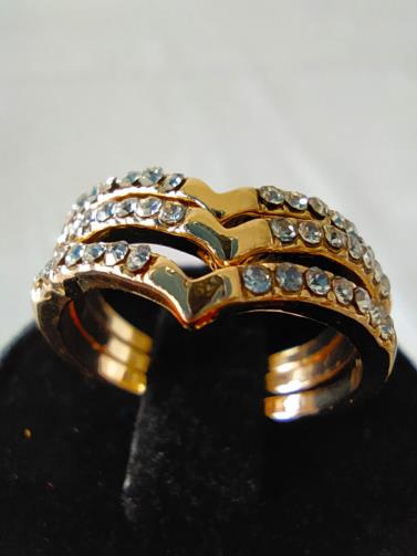 Três anéis em metal dourado cravejado de pedras de brilho em estilo, podendo usar todos em um dedo ou de forma separada ( um em cada dedo ). Nº18