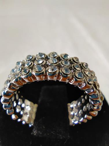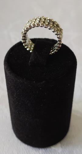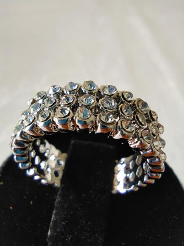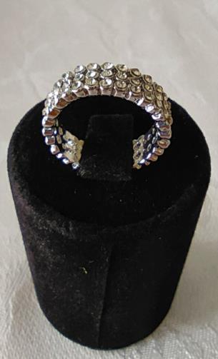 Anel em metal prateado triplo indexado cravejado de pedras de brilho. Nº18