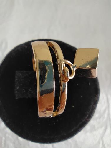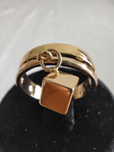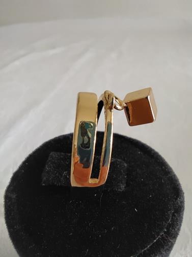 Anel Duplo indexado em metal dourado com um pingente em forma de cubo dourado. Nº18