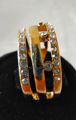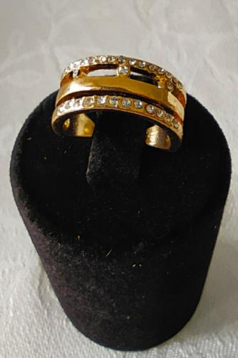 Anel em metal dourado cravejado de pedras de brilho triplo indexado. Nº18