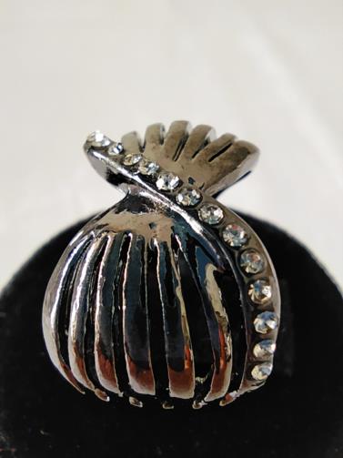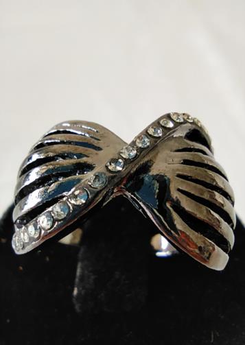 Anel em metal ônix entrelaçado em forma de gravata cravejado de pedras de brilho. Nº18