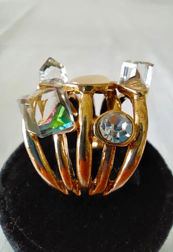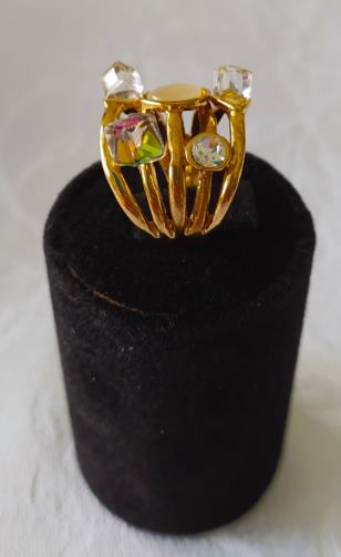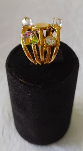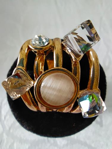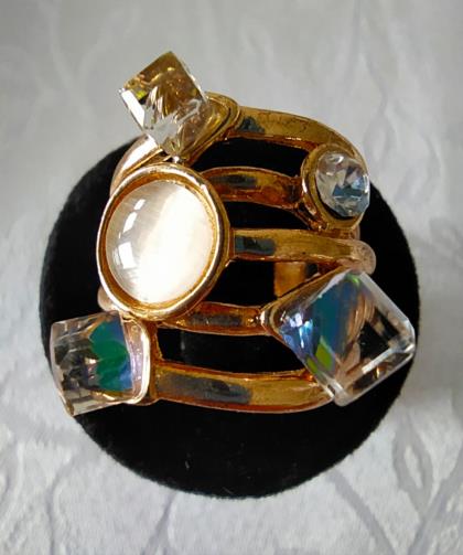 Anel em metal dourado quíntuplo indexado com pedras de efeito de forma geométricas. Nº18