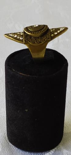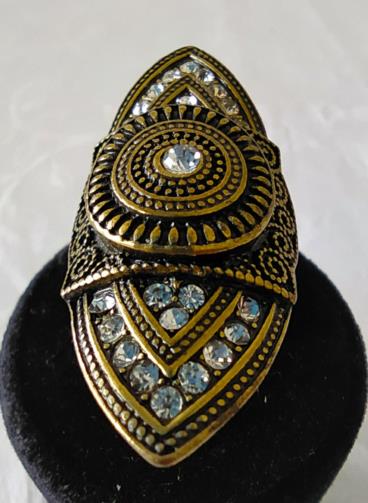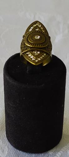 Anel em metal dourado em gramatura de forma tribal cravejado de pedras de brilho. Nº18