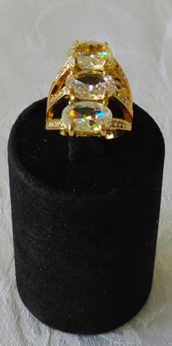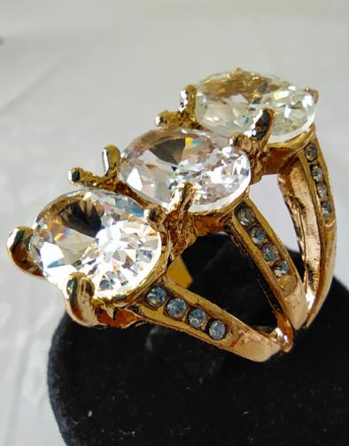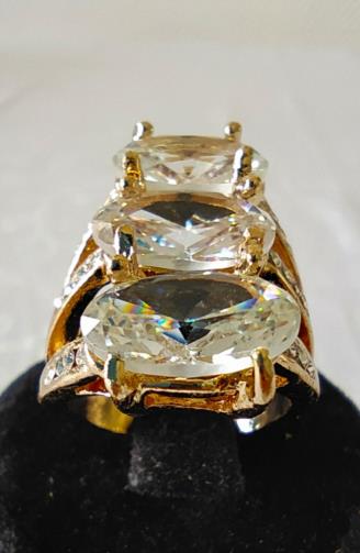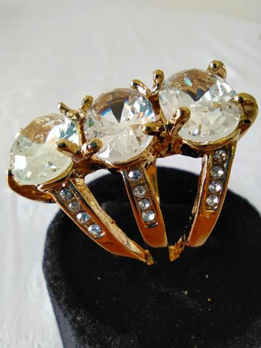 Anel em metal dourado indexado triplo com pedras transparente brilhosa e cravejada de pedras de brilho. Nº18