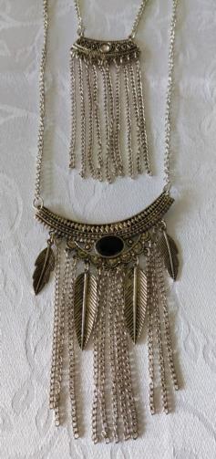 Cordão Duplo Penas Prateadas