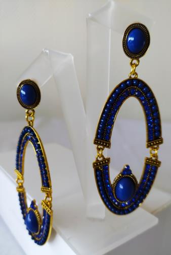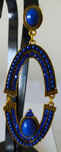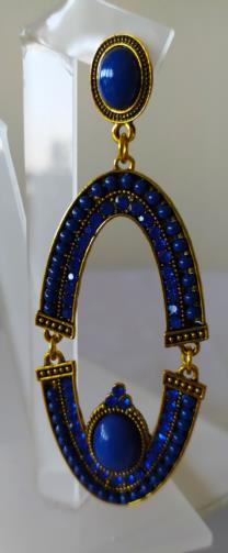 Brinco Oval Articulado Pedras Azuis