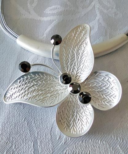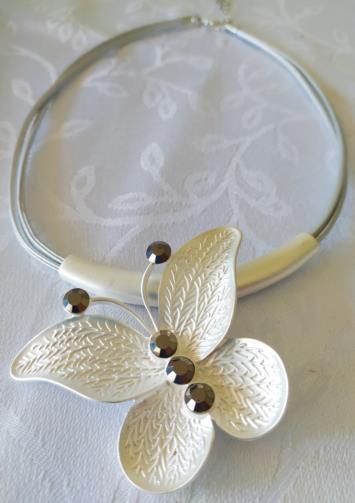 Colar Borboleta Prateada Pedras ônix