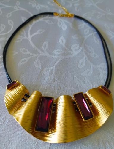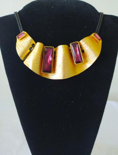 Colar Designer Dourado Pedras Violetas