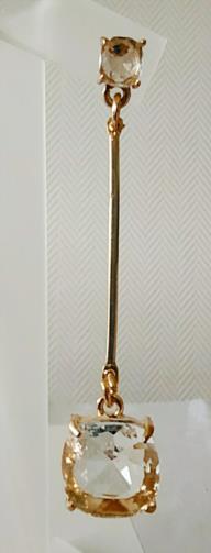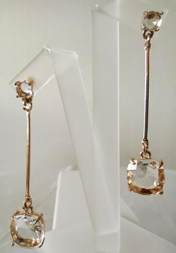Peça em metal dourado com duas estruturas com pedras de brilho quadrada na cor amarela medindo 7,5cm.