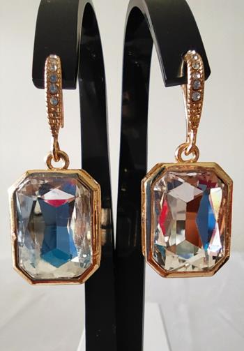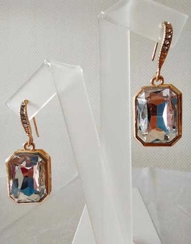 Brinco Dourado Pedra Quadrada Brilho