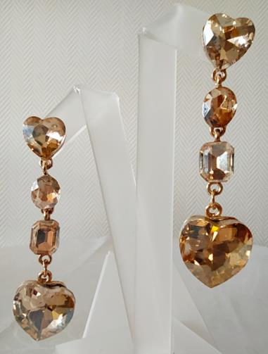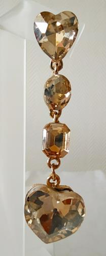 Peça em metal dourado com quatro pedras de brilho na cor Amarela medindo 6,5cm . As pedras tem formas de coração , oval e retangular.