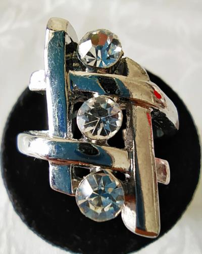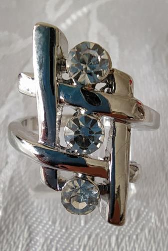 Anel em metal prateado com o símbolo hashtag com três pedras de brilho. Nº18