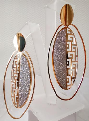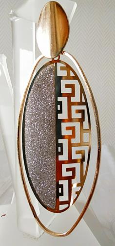 Peça em metal dourado com brilho em formato Oval estilizado medindo 9,0 cm.