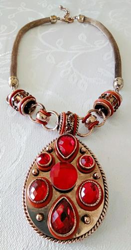 Colar Tailandês Gota Pedras Vermelhas