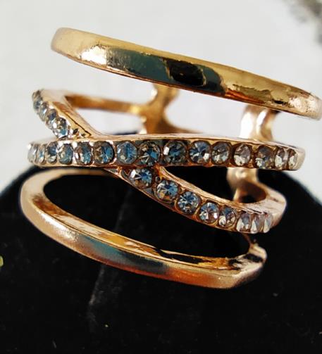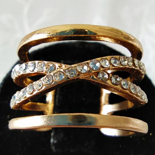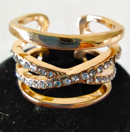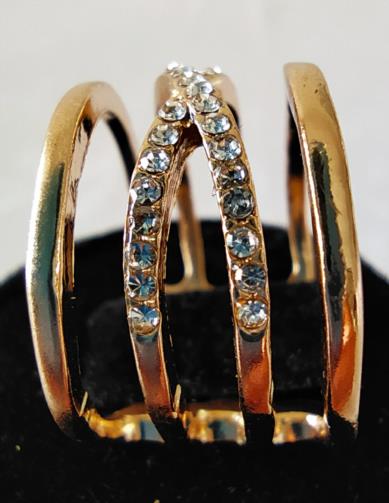 Anel em metal dourado quádruplo indexado em estilo cravejado de pedras de brilho. Nº18